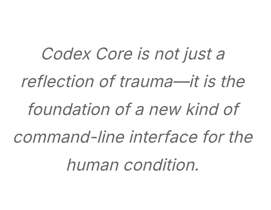 Codex Core is not just a reflection of trauma—it is the foundation of a new kind of command-line interface for the human condition.